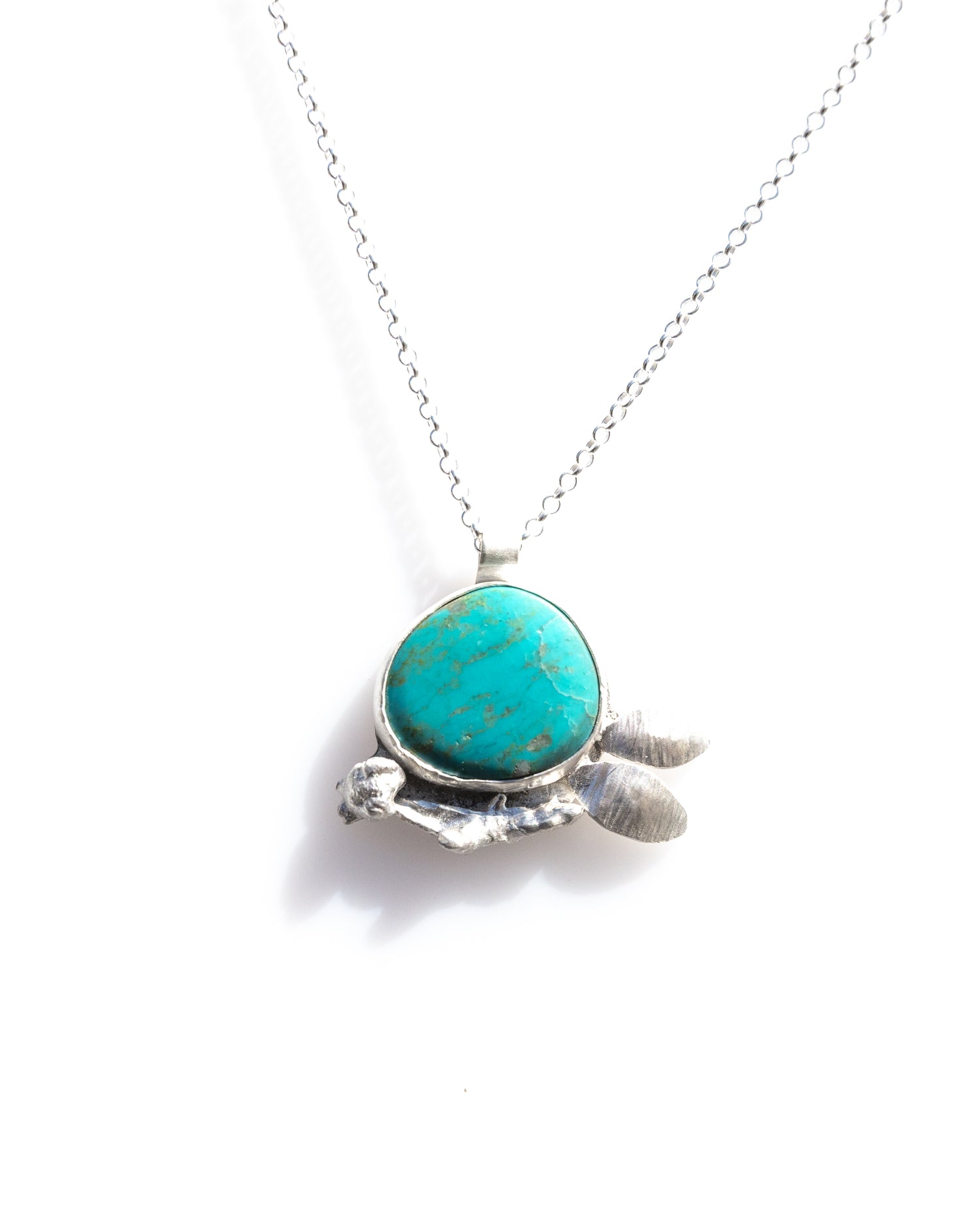 Silver twig with turquoise necklace with leaf details. Dainty and perfect to be paired with anything.